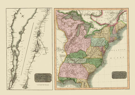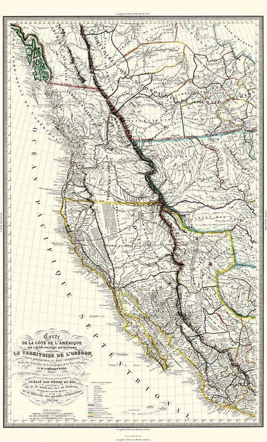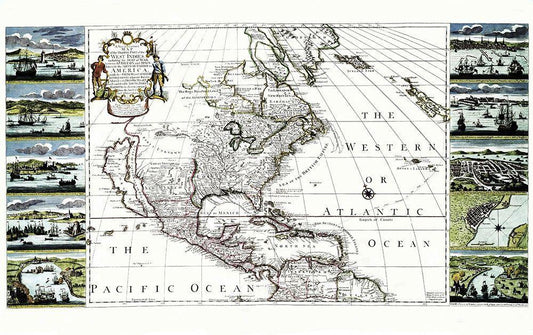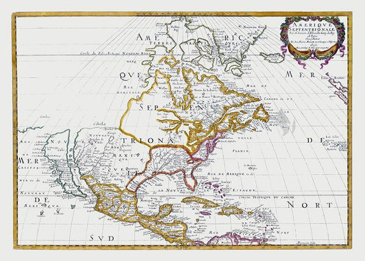 North America Mexico United States - Sanson 1650 White Modern Wood Framed Art Print with Double Matting by Sanson