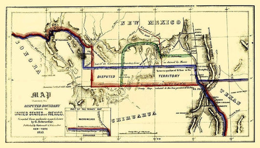 Disputed Boundary United States Mexico White Modern Wood Framed Art Print with Double Matting by Schroefer