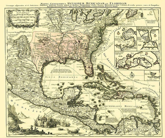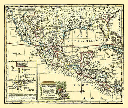 Caribbean New Spain Mexico with Indian Tribe White Modern Wood Framed Art Print with Double Matting by Humboldt