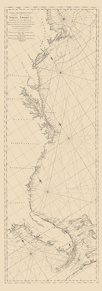 Cape Cod To Havannah - Moore 1784 White Modern Wood Framed Art Print with Double Matting by Moore