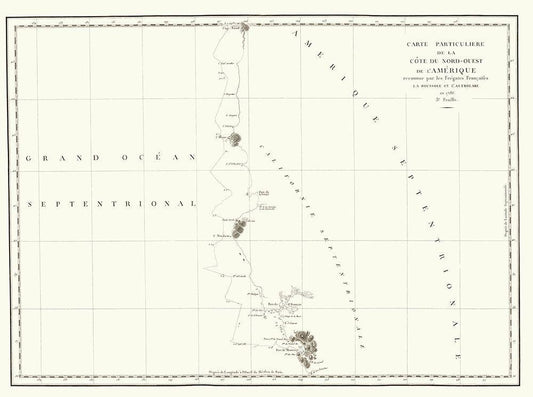North America Western Coast - La Perouse 1786 White Modern Wood Framed Art Print with Double Matting by La Perouse