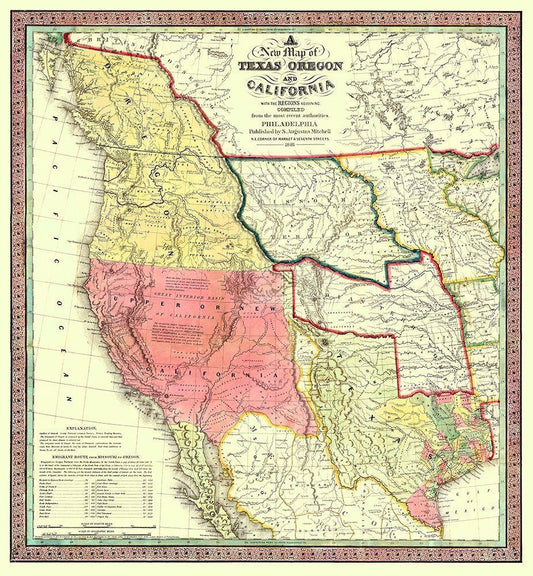 North America Western Territories - Hoen 1844 White Modern Wood Framed Art Print with Double Matting by Hoen