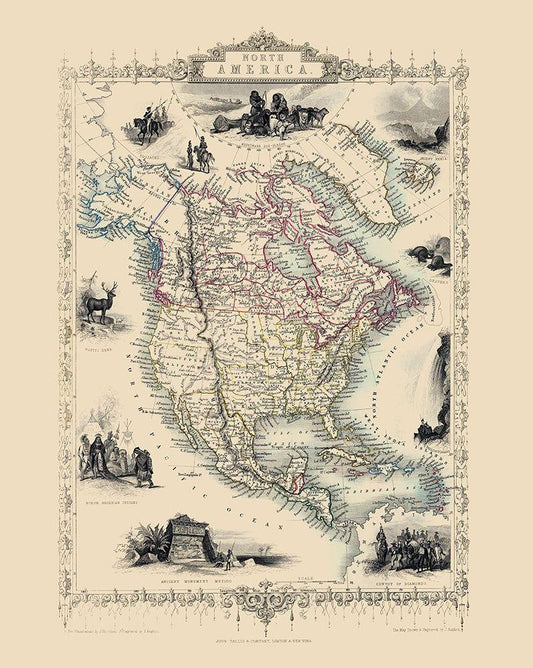 North America - Tallis 1851 White Modern Wood Framed Art Print with Double Matting by Tallis