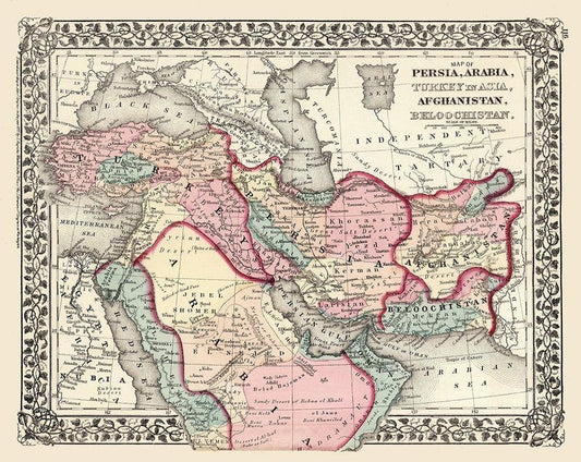 Middle East Persia Arabia - Mitchell 1857 White Modern Wood Framed Art Print with Double Matting by Mitchell