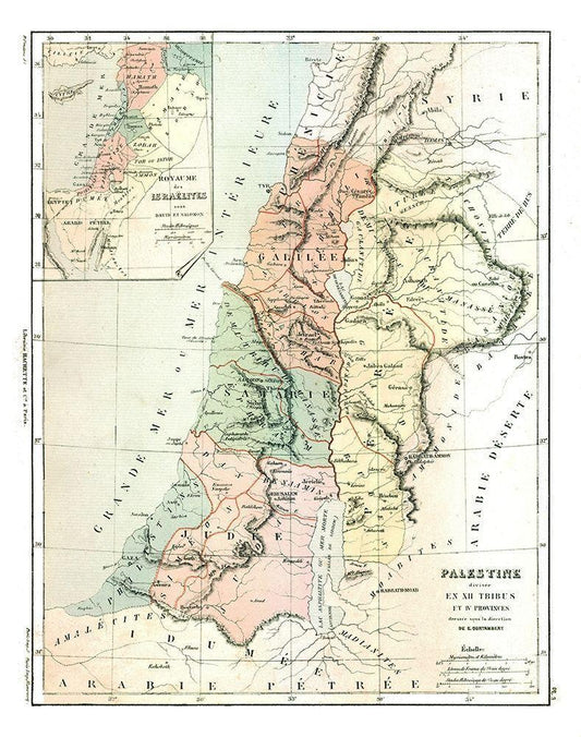 Middle East Palestine Kingdom of Israel White Modern Wood Framed Art Print with Double Matting by Cortambert
