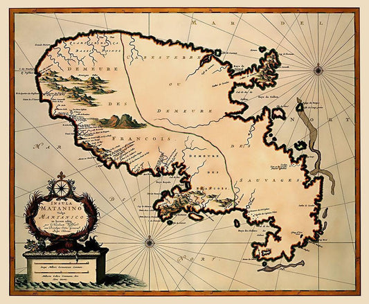 Caribbean Martinique - Visscher 1681 White Modern Wood Framed Art Print with Double Matting by Visscher