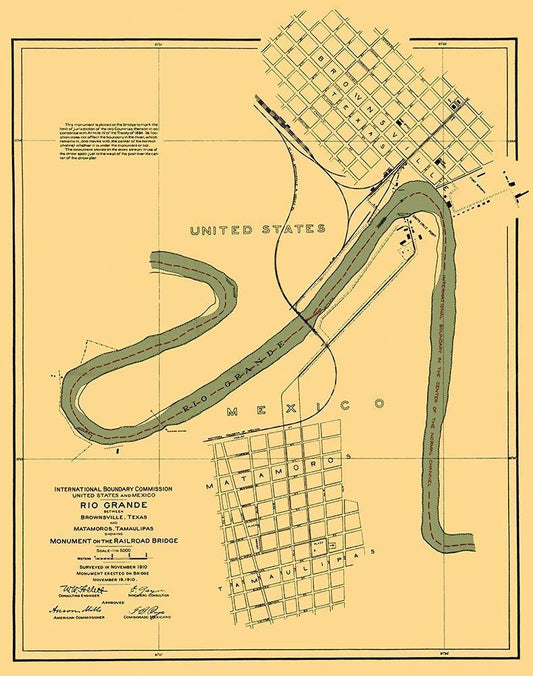 Rio Grande Border Matamoros Mexico United States White Modern Wood Framed Art Print with Double Matting by Peters