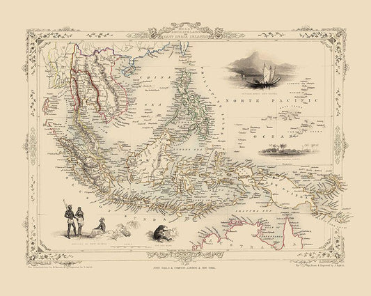 Malasian Archipelago Asia - Tallis 1851 White Modern Wood Framed Art Print with Double Matting by Tallis