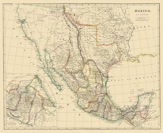 Mexico - Arrowsmith 1844 White Modern Wood Framed Art Print with Double Matting by Arrowsmith
