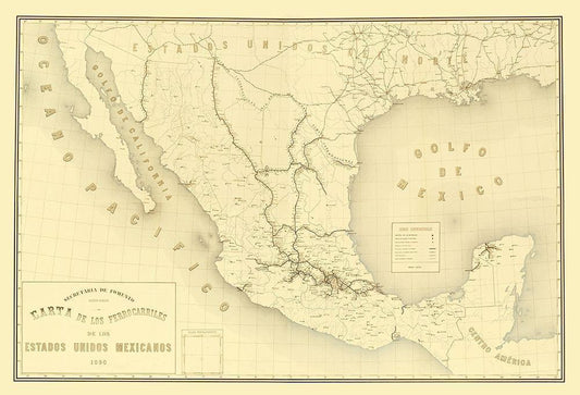 Railroads Mexico - Hermanos 1890 White Modern Wood Framed Art Print with Double Matting by Hermanos