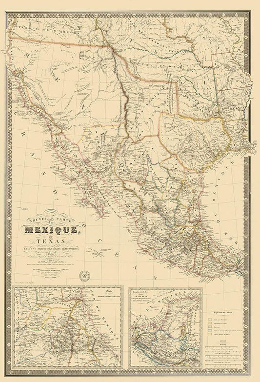 Southwest United States Mexico - Brue 1840 White Modern Wood Framed Art Print with Double Matting by Brue
