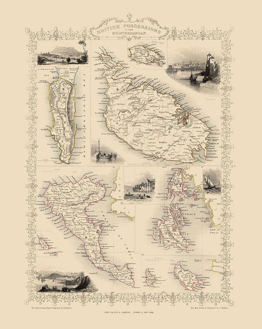 British Possessions Mediterranean Malta White Modern Wood Framed Art Print with Double Matting by Tallis