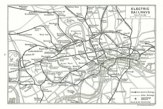 Electric Railways London UK - Bartholomew 1921 White Modern Wood Framed Art Print with Double Matting by Bartholomew