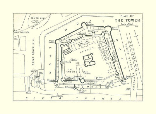 Tower London UK - Bartholomew 1921 White Modern Wood Framed Art Print with Double Matting by Bartholomew