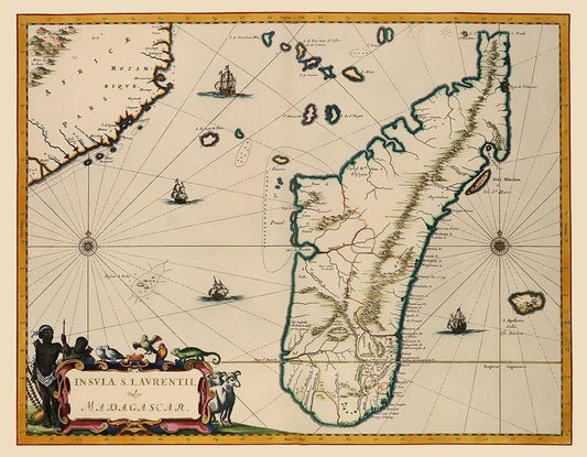 Madagascar Africa - Blaeu 1662 White Modern Wood Framed Art Print with Double Matting by Blaeu