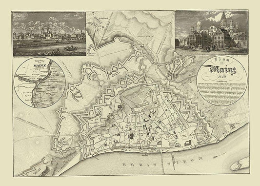 Mainz Germany - Hildburghausen 1849 White Modern Wood Framed Art Print with Double Matting by Hildburghausen