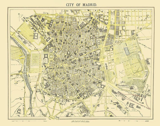 Iberian Peninsula Madrid Spain - Letts 1883 White Modern Wood Framed Art Print with Double Matting by Letts