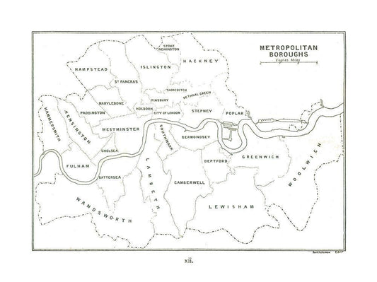 Metropolitan Boroughs London UK - Bartholomew 1921 White Modern Wood Framed Art Print with Double Matting by Bartholomew