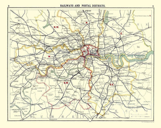 Railways Postal Districts London UK White Modern Wood Framed Art Print with Double Matting by Bartholomew