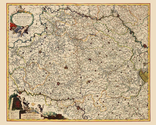 Benelux Luxembourg - Visscher 1680 White Modern Wood Framed Art Print with Double Matting by Visscher