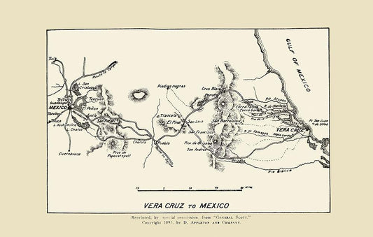 Vera Cruz to Mexico City War Map 1893 White Modern Wood Framed Art Print with Double Matting by Appleton