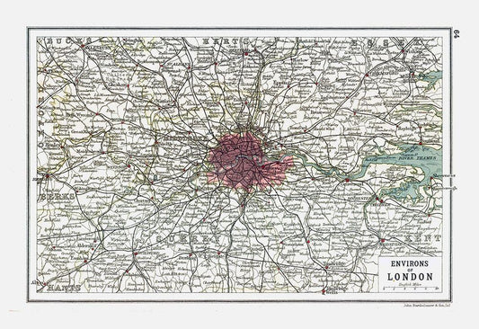 London England - Bartholomew 1892 White Modern Wood Framed Art Print with Double Matting by Bartholomew