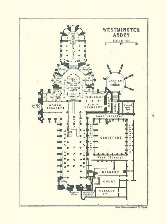 Westminster Abbey London UK - Bartholomew 1921 White Modern Wood Framed Art Print with Double Matting by Bartholomew