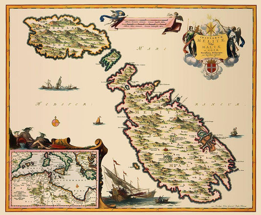 Mediterranean Malta - Visscher 1681 White Modern Wood Framed Art Print with Double Matting by Visscher