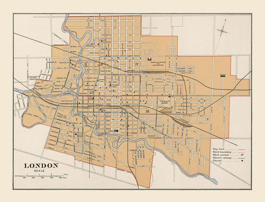 London Canada - Chalifour 1915 White Modern Wood Framed Art Print with Double Matting by Chalifour