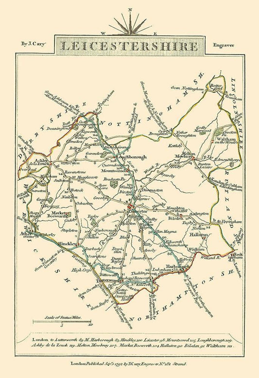 Leicestershire County England - Cary 1792 White Modern Wood Framed Art Print with Double Matting by Cary