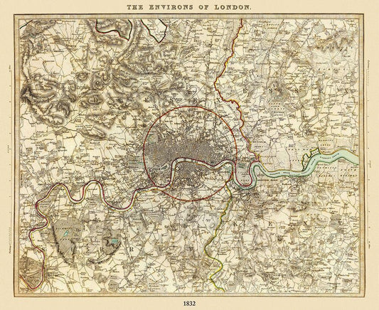 London England - Chapman 1832 White Modern Wood Framed Art Print with Double Matting by Chapman