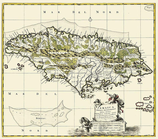 Americae Septentrionalis Caribbean Jamaica White Modern Wood Framed Art Print with Double Matting by Visser
