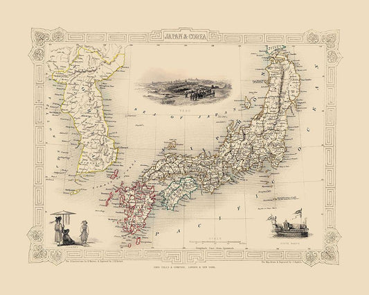 Asia Japan Korea - Tallis 1851 White Modern Wood Framed Art Print with Double Matting by Tallis