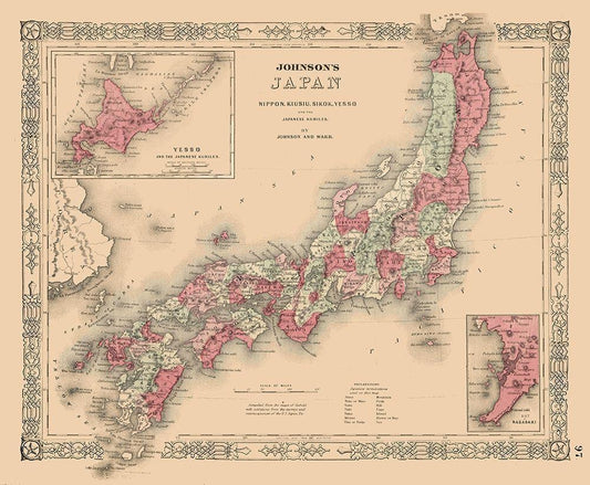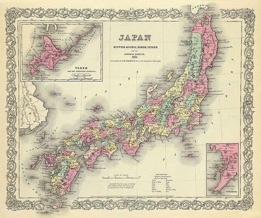 Japan - Johnson 1864 White Modern Wood Framed Art Print with Double Matting by Johnson