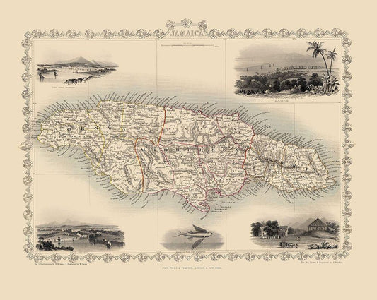 Caribbean Jamaica - Tallis 1851 White Modern Wood Framed Art Print with Double Matting by Tallis
