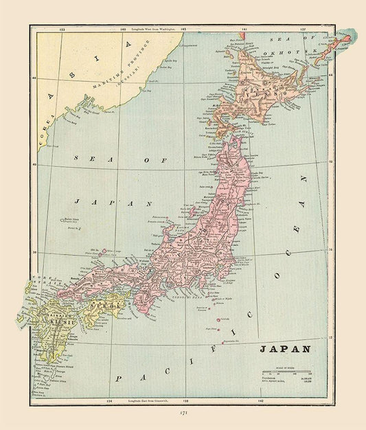Japan - Cram 1892 White Modern Wood Framed Art Print with Double Matting by Cram
