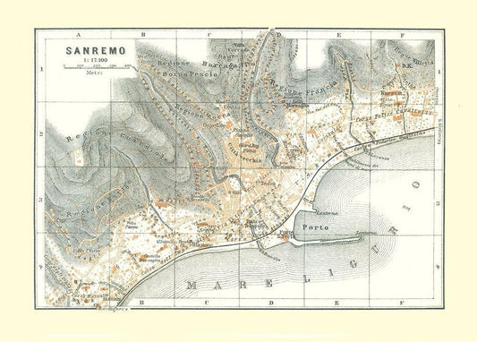 Sanremo Italy - Bertarelli 1914 White Modern Wood Framed Art Print with Double Matting by Bertarelli