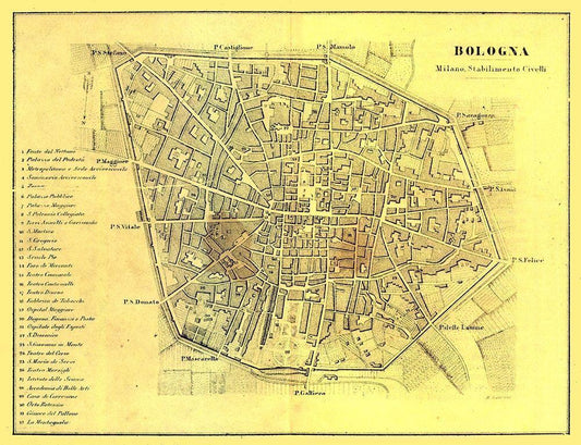 Bologna Italy - Castro 1870 White Modern Wood Framed Art Print with Double Matting by Castro