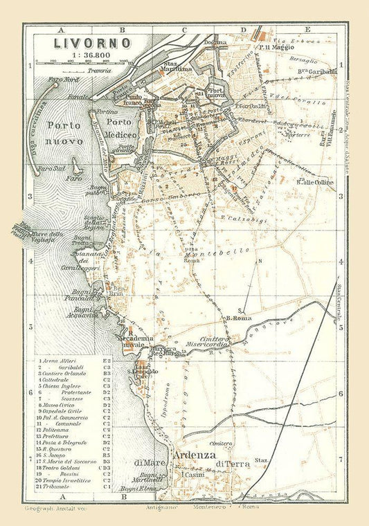 Livorno Italy - Bertarelli 1914 White Modern Wood Framed Art Print with Double Matting by Bertarelli