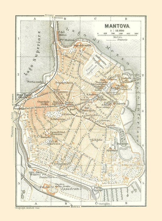 Mantova Italy - Bertarelli 1914 White Modern Wood Framed Art Print with Double Matting by Bertarelli