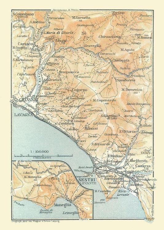 Chiavari Sestri Moneglia Italy - Bertarelli 1914 White Modern Wood Framed Art Print with Double Matting by Bertarelli