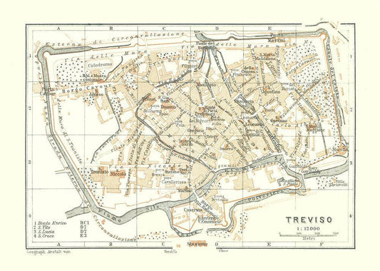 Treviso Italy - Bertarelli 1914 White Modern Wood Framed Art Print with Double Matting by Bertarelli