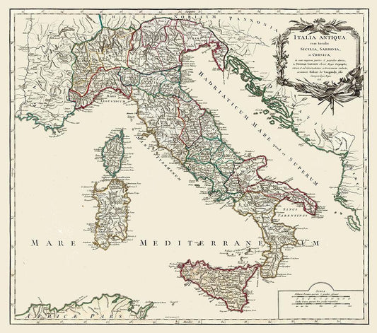 Ancient Italy - Vaugondy 1757 White Modern Wood Framed Art Print with Double Matting by Vaugondy