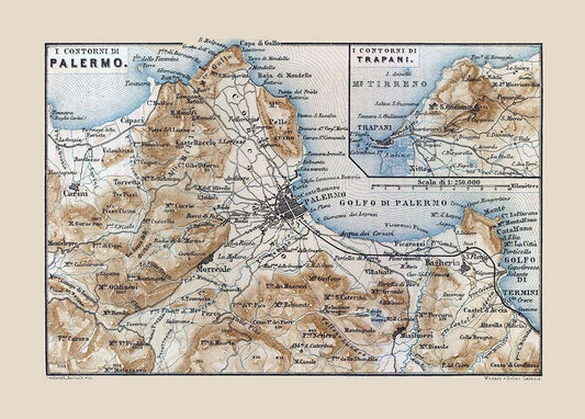 Palermo Trapani Italy - Baedeker 1880 White Modern Wood Framed Art Print with Double Matting by Baedeker