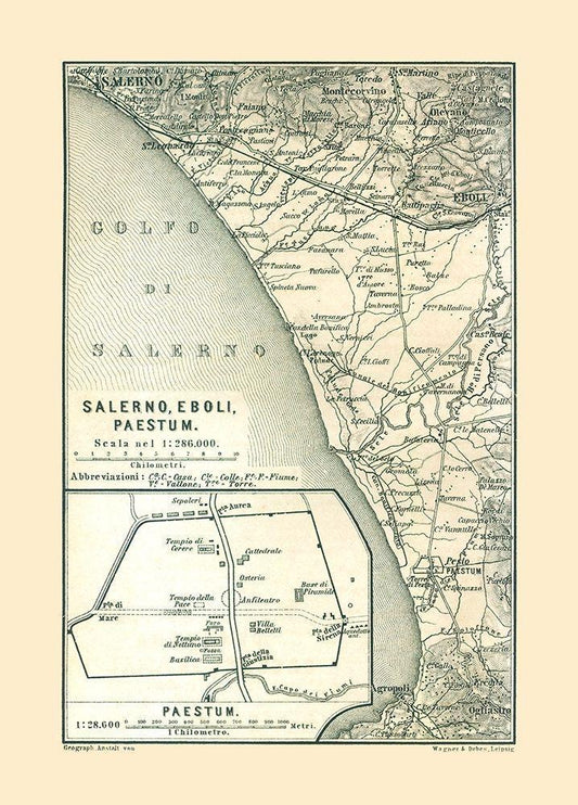 Salerno Eboli Paestrum Italy - Baedeker 1880 White Modern Wood Framed Art Print with Double Matting by Baedeker