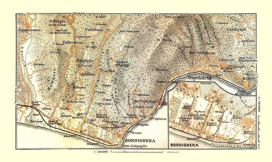 Bordighera Italy - Bertarelli 1914 White Modern Wood Framed Art Print with Double Matting by Bertarelli