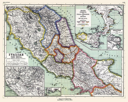 Central Italy - Kiepert 1903 White Modern Wood Framed Art Print with Double Matting by Kiepert