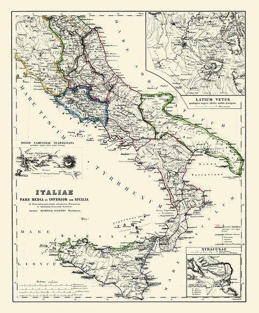 Central South Italy - Kiepert 1903 White Modern Wood Framed Art Print with Double Matting by Kiepert