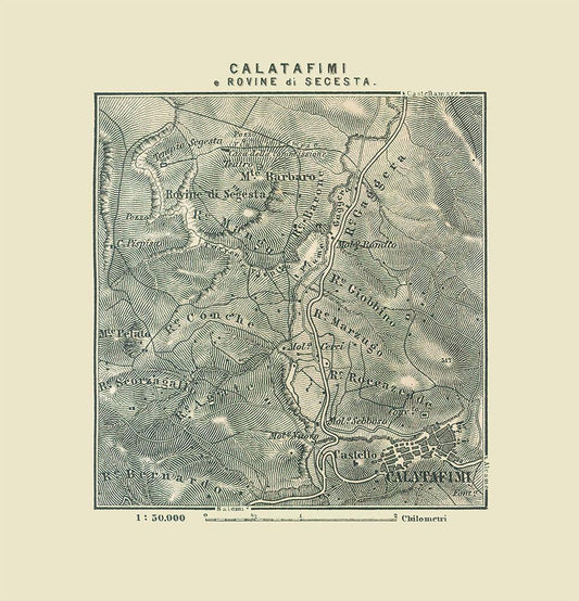 Calatafimi Ruins Segesta Italy - Baedeker 1880 White Modern Wood Framed Art Print with Double Matting by Baedeker