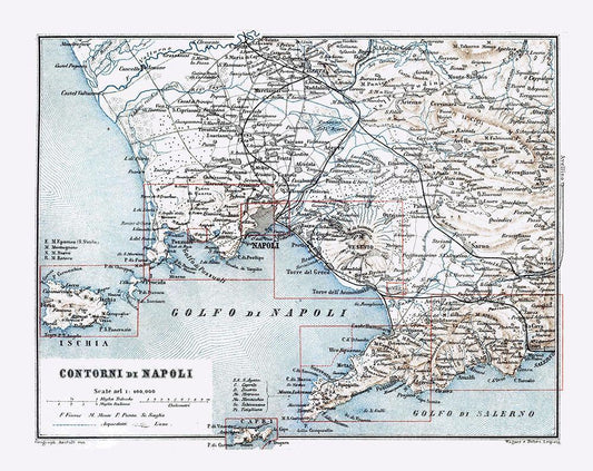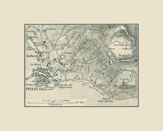 Pozzuoli Italy - Baedeker 1880 White Modern Wood Framed Art Print with Double Matting by Baedeker